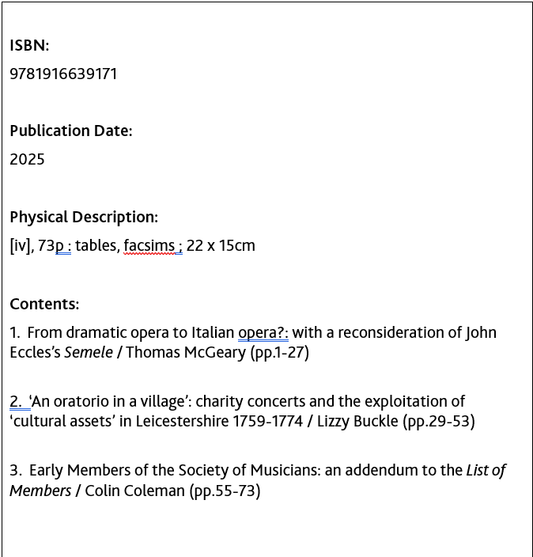 A Handbook for Studies in 18th-Century English Music