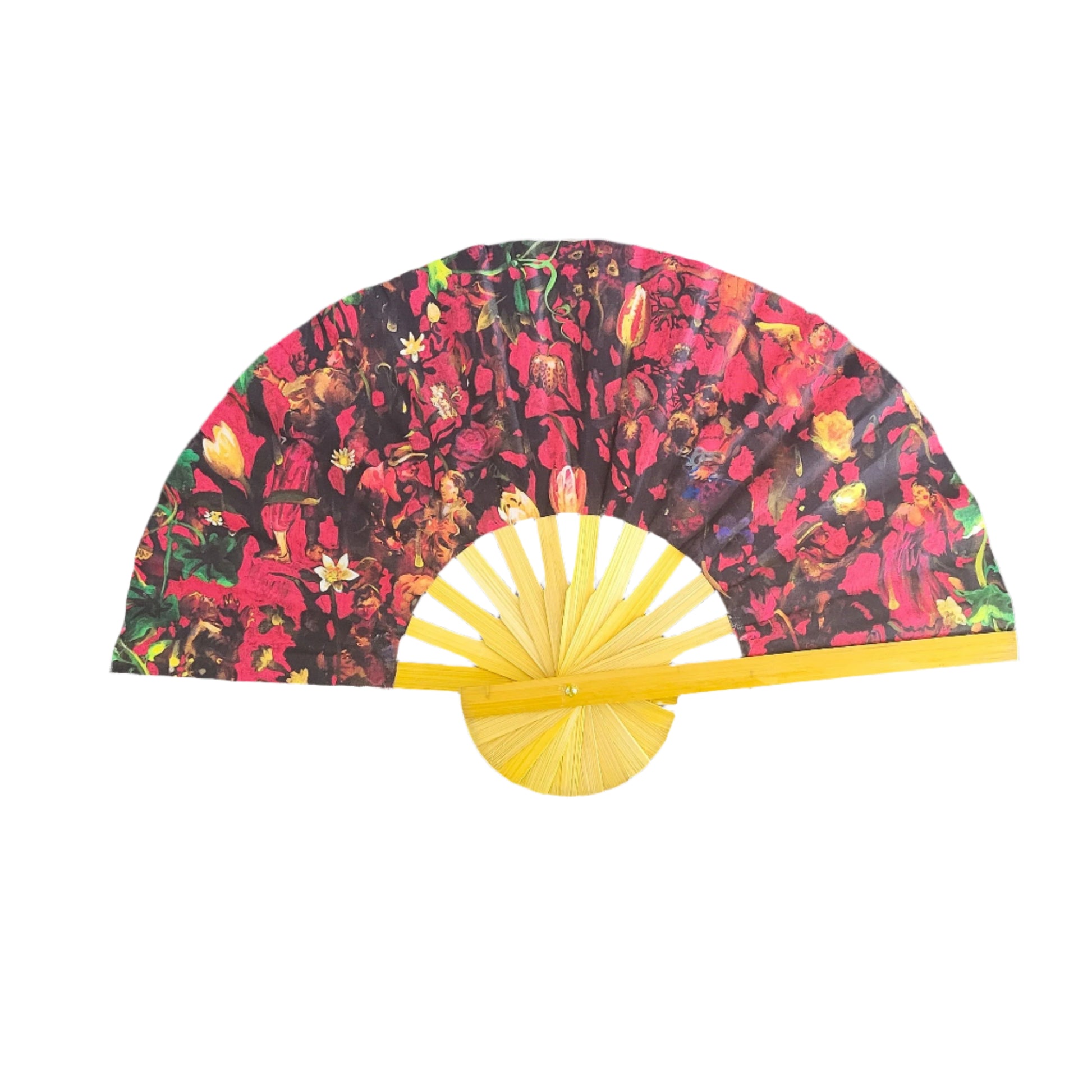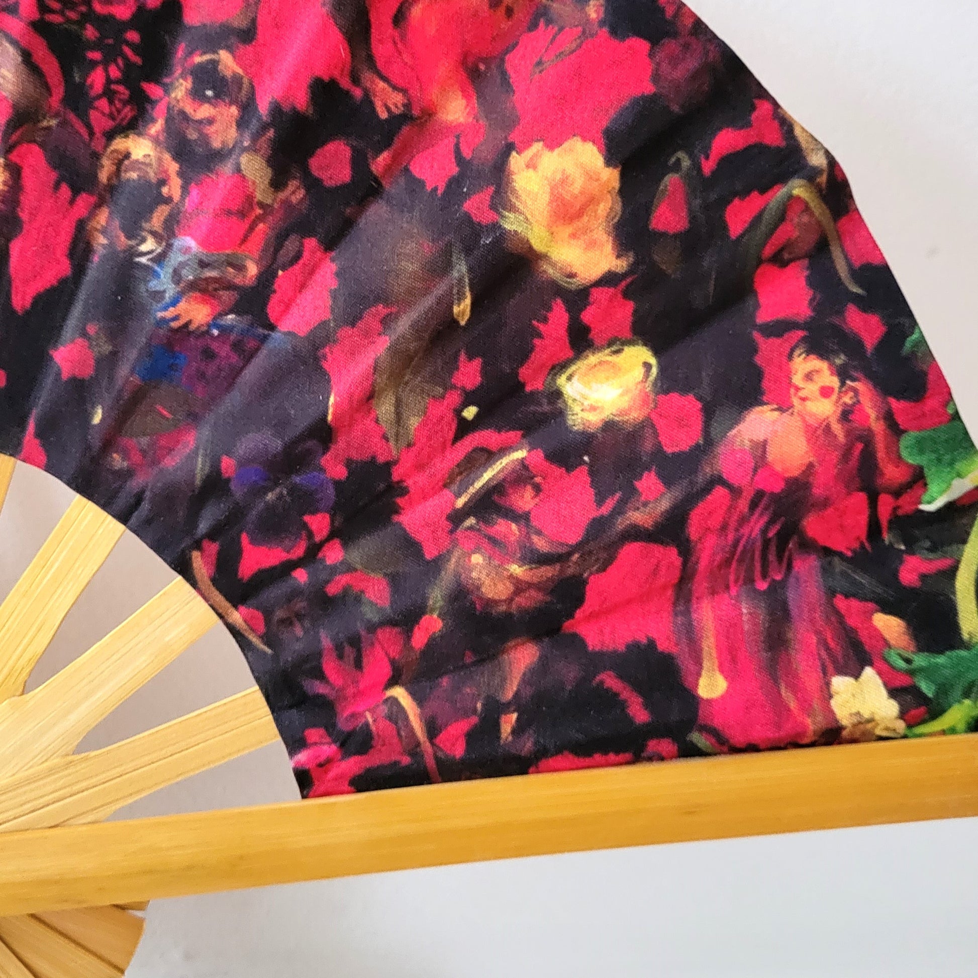 Blend art and style with this stunning fabric fan, featuring the magnificent artwork by Nicola Bealing, Joyful News.