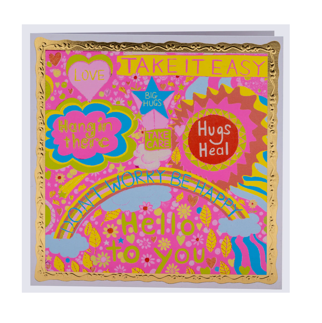 Brimming with love, positivity & the warmest of wishes this beautiful piece of art was created by ARTHOUSE Unlimited artist Jack Churchyard in his intricate signature style. Now printed with a dazzling, gold embosses frame and blank inside, this card is ready to be sent with your own personal take it easy greeting.